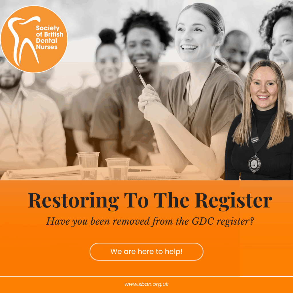 Please remember, if you have been removed from the register, you must not work ‘Chair-side’ until you have been restored to the register.