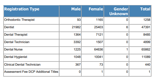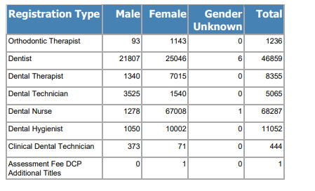 If there are even 65,862 dental nurses on the GDC register, where are they, acknowledging that approximately 3,000 hold more than one registrable title and are unlikely to be working as a dental nurse as their primary source of work? Some years ago, it was reported that 1.5 dental nurses per dentist was an appropriate figure; now we need to consider the additional workload and include working for a dental hygienist or a dental therapist, as their workflow has changed and being supported by a dental nurse is as important. In reality, it has been noted in the international field that the ratio is more like 2.4 dental nurses per clinician, which is a more accurate representation. With 47,391 dentists, 8,485 dental therapists and 11,089 dental hygienists on the GDC register as of August 2025 (total of 66 965) and taking a view of 2.4 dental nurses per clinician, the data would have us believe that there should be 160,716 clinical dental nurses on the GDC register, as a broad brush figure – food for thought.
